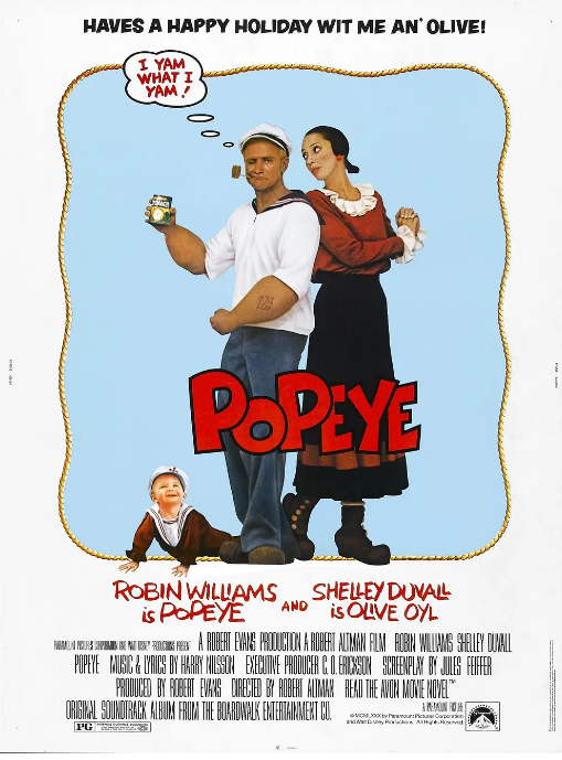 大力水手 Popeye (1980) 导演: 罗伯特·奥特曼 编剧: 朱尔斯·费弗 / E·C·西格 主演: 罗宾·威廉姆斯 / 谢莉·杜瓦尔 / 雷·沃尔斯顿 / 保罗·杜利 / 保罗·L·史密斯 / 更多… 类型: 喜剧 / 爱情 / 歌舞 / 家庭 制片国家/地区: 美国 语言: 英语 上映日期: 1980-12-06(美国) 片长: 114分钟 资源下载下载价格免费立即下载王风雷笔记,每天提供实用免费网盘资源下载,如果对你有用,记得收藏网站,分享给身边的朋友哦! 0 大力水手