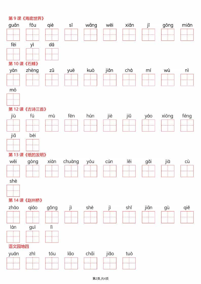 三年级下语文看拼音写词语—写字表