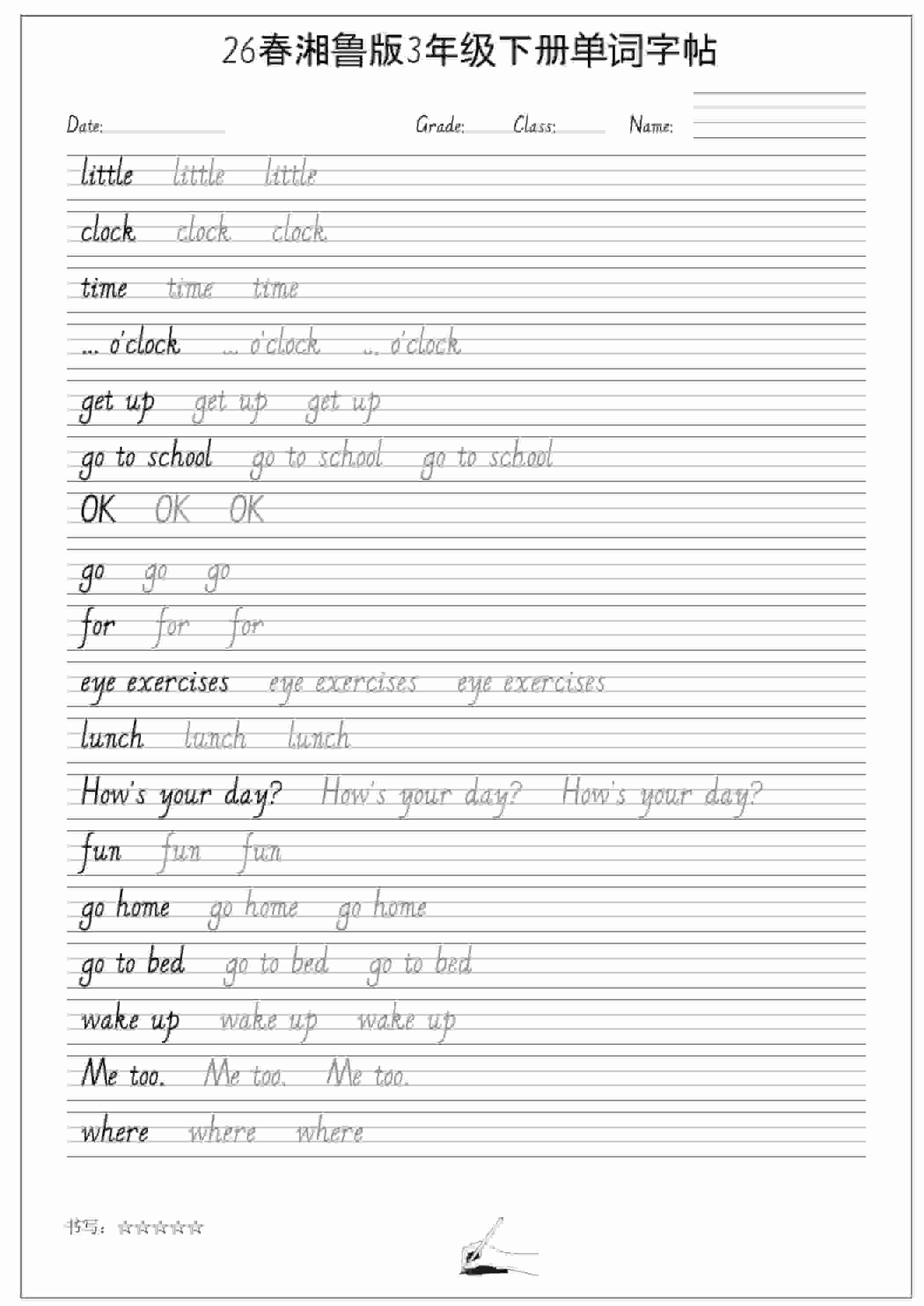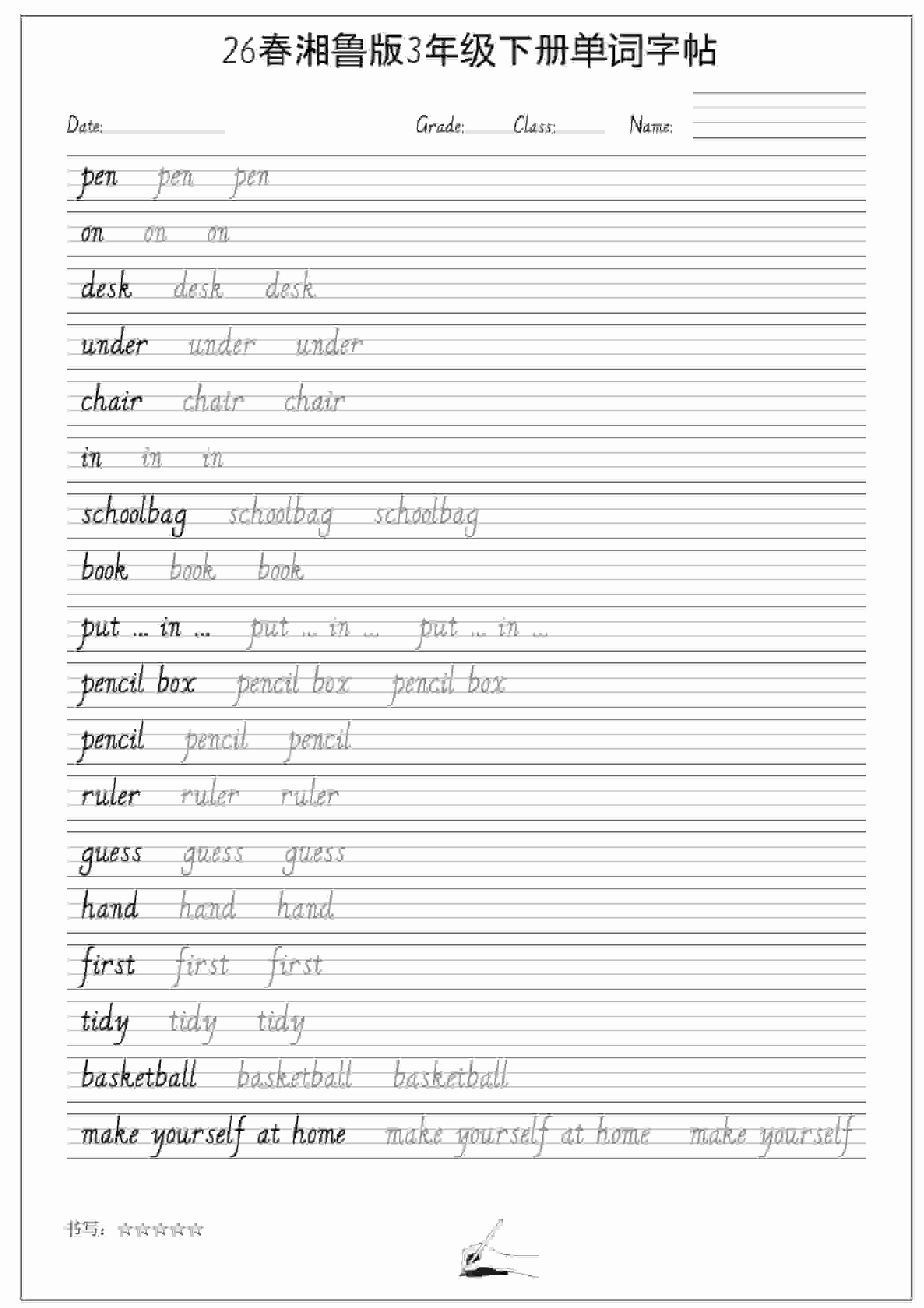 三年级下英语26春单词字帖《湘鲁版》